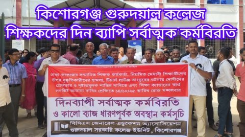 সোমবার (১৭ নভেম্বর) বিসিএস সাধারণ শিক্ষা ক্যাডারের যোগ্য প্রভাষকদের সহকারী অধ্যাপক পদে পদোন্নতিসহ তিন দফা দাবিতে কিশোরগঞ্জে কর্মবিরতি ও মানববন্ধন করেছেন শিক্ষা ক্যাডারের সদস্যরা। গুরুদয়াল সরকারি কলেজ ইউনিটের উদ্যোগে এই কর্মসূচি পালন করা হয়। শিক্ষকেরা…