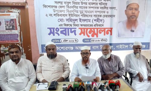বৃহস্পতিবার (২ এপ্রিল) দুপুরে কিশোরগঞ্জ জেলা শহরের গাইটাল আন্ত:জেলা বাস টার্মিনাল মিলনায়তনে সংবাদ সম্মেলন করেন লতিবাবাদ ইউপি’র সাবেক চেয়ারম্যান সহিদুল…