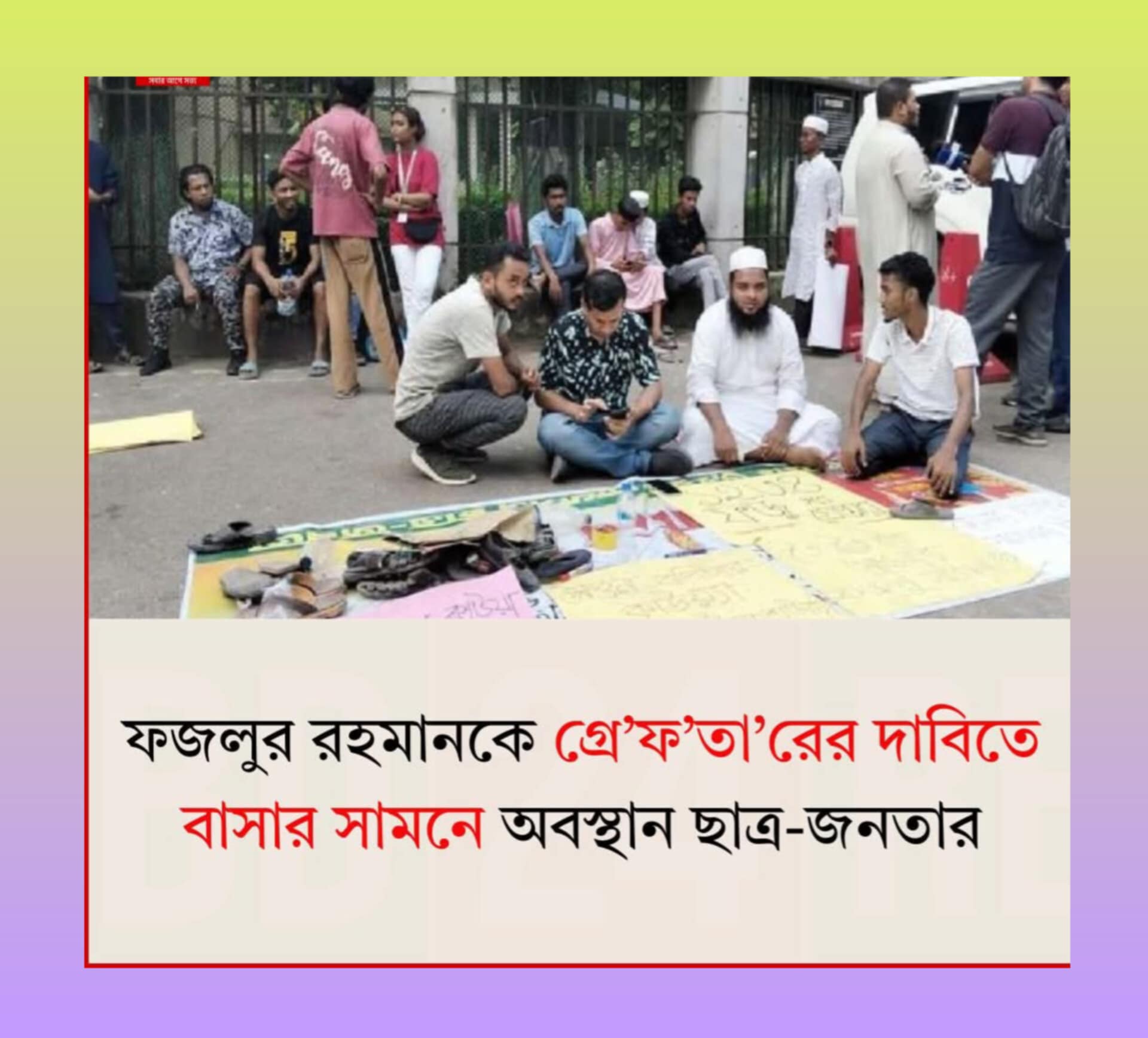 ফজলুর রহমানকে গ্রেফতার ও দৃষ্টান্তমূলক শাস্তির দাবিতে অবস্থান নিয়েছেন ছাত্ররা