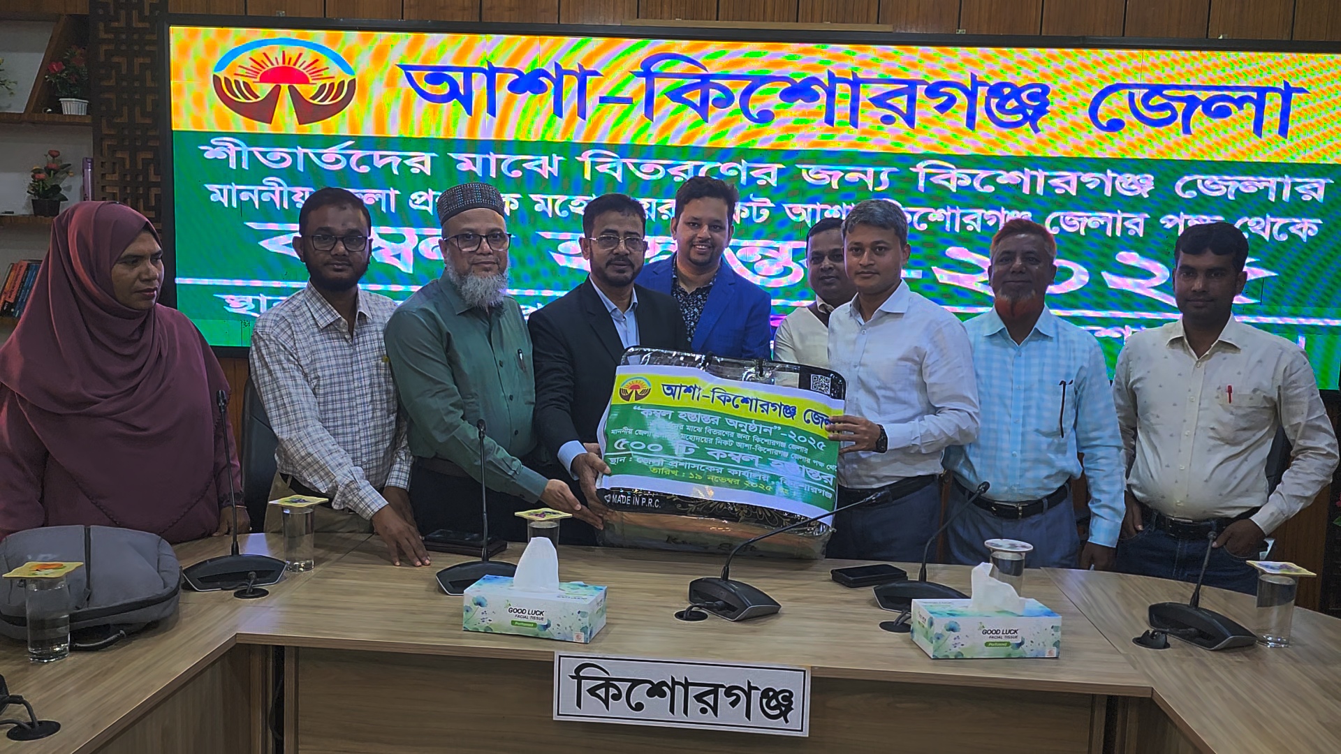 কম্বল হস্তান্তর করেন আশা কিশোরগঞ্জ জেলার সিনিয়র ডিস্ট্রিক্ট ম্যানেজার মো. ফজলুল হক মিন্টু। এ সময় আশা’র রিজিওনাল ম্যানেজার মো. মামুন আব্দুল গাইউম, সাপোর্ট ইঞ্জিনিয়ার মোহাম্মদ ওমর ফারুক, ব্রাঞ্চ ম্যানেজার তাজউদ্দিন আহমেদ, মো. আমিনুল ইসলাম, মো. আব্দুল মজিদ, জাহানারা বেগম ও মো. ফারুক আহমেদ প্রমুখসহ আশা’র বিভিন্ন পর্যায়ের কর্মকর্তাগণ উপস্থিত ছিলেন। অতিরিক্ত জেলা প্রশাসক (সার্বিক) মিজাবে রহমত শীতার্তদের মাঝে কম্বল বিতরণের উদ্যোগকে স্বাগত জানান এবং আশা’র বিভিন্ন ধরনের সামাজিক কার্যক্রমের স্বত্ঃস্ফুর্ত অংশগ্রহণের জন্য ধন্যবাদ জানান। এছাড়া এ ধরনের কার্যক্রমের ধারাবাহিকতা অব্যাহত রাখার জন্যও তিনি পরামর্শ দেন। প্রসঙ্গত, আশা’র নিজস্ব অর্থায়নে ২০২৫ সালে সারাদেশের দরিদ্র শীতার্ত মানুষের মাঝে প্রায় এক কোটি ৪০ লাখ টাকা মূল্যের ৩৫ হাজার কম্বল বিতরণের লক্ষ্যমাত্রা নির্ধারণ করেছে বলে সংশ্লিষ্টরা জানিয়েছেন।