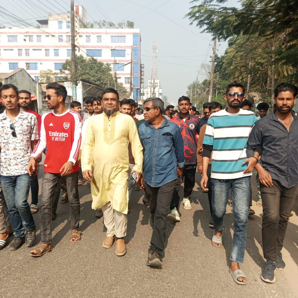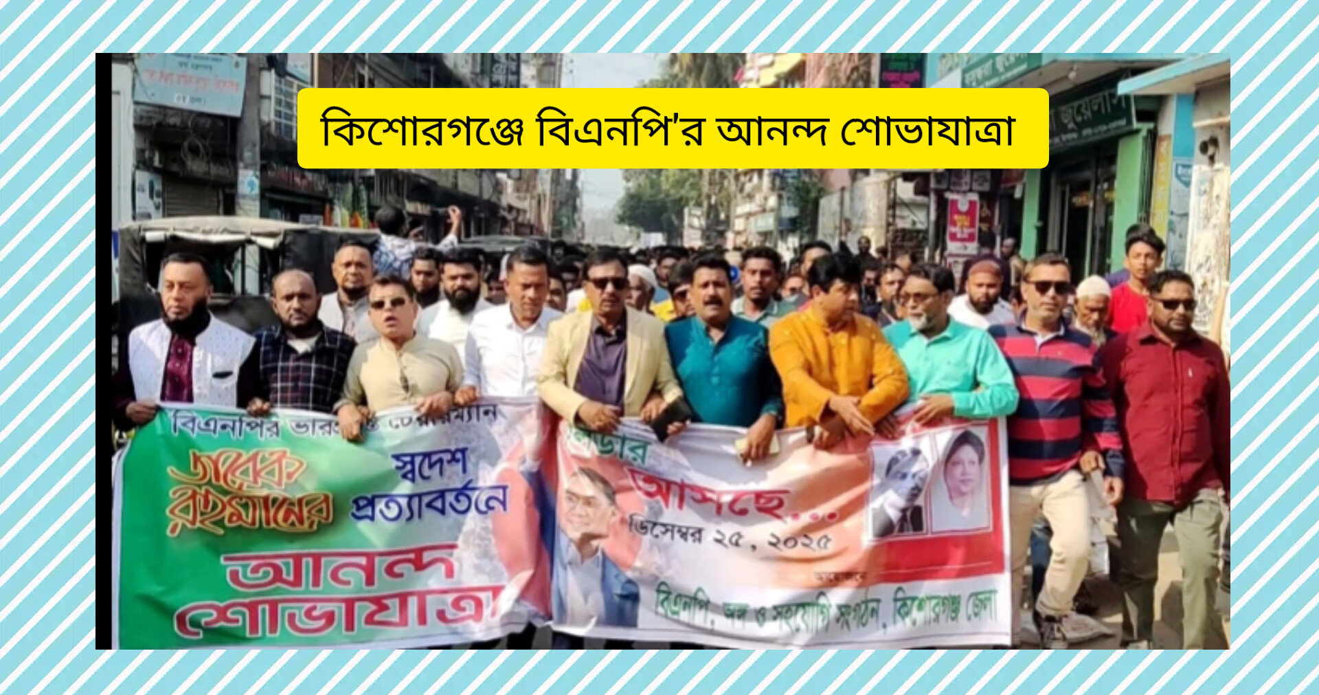 আনন্দ শোভাযাত্রায় নেতৃত্ব দেন জেলা বিএনপির সাধারণ সম্পাদক ও কিশোরগঞ্জ-০১ আসনের এমপি পদপ্রার্থী মাজহারুল ইসলাম।