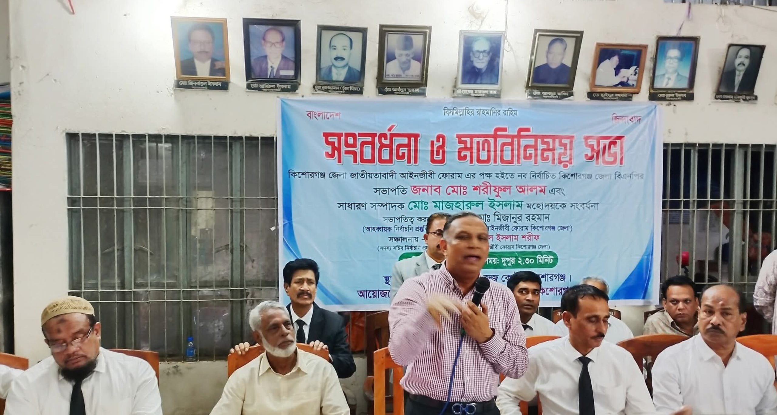 কিশোরগঞ্জে আইনজীবী ফোরাম এর উদ্যোগে নবনির্বাচিত জেলা বিএনপি নেতাদের সংবর্ধনা