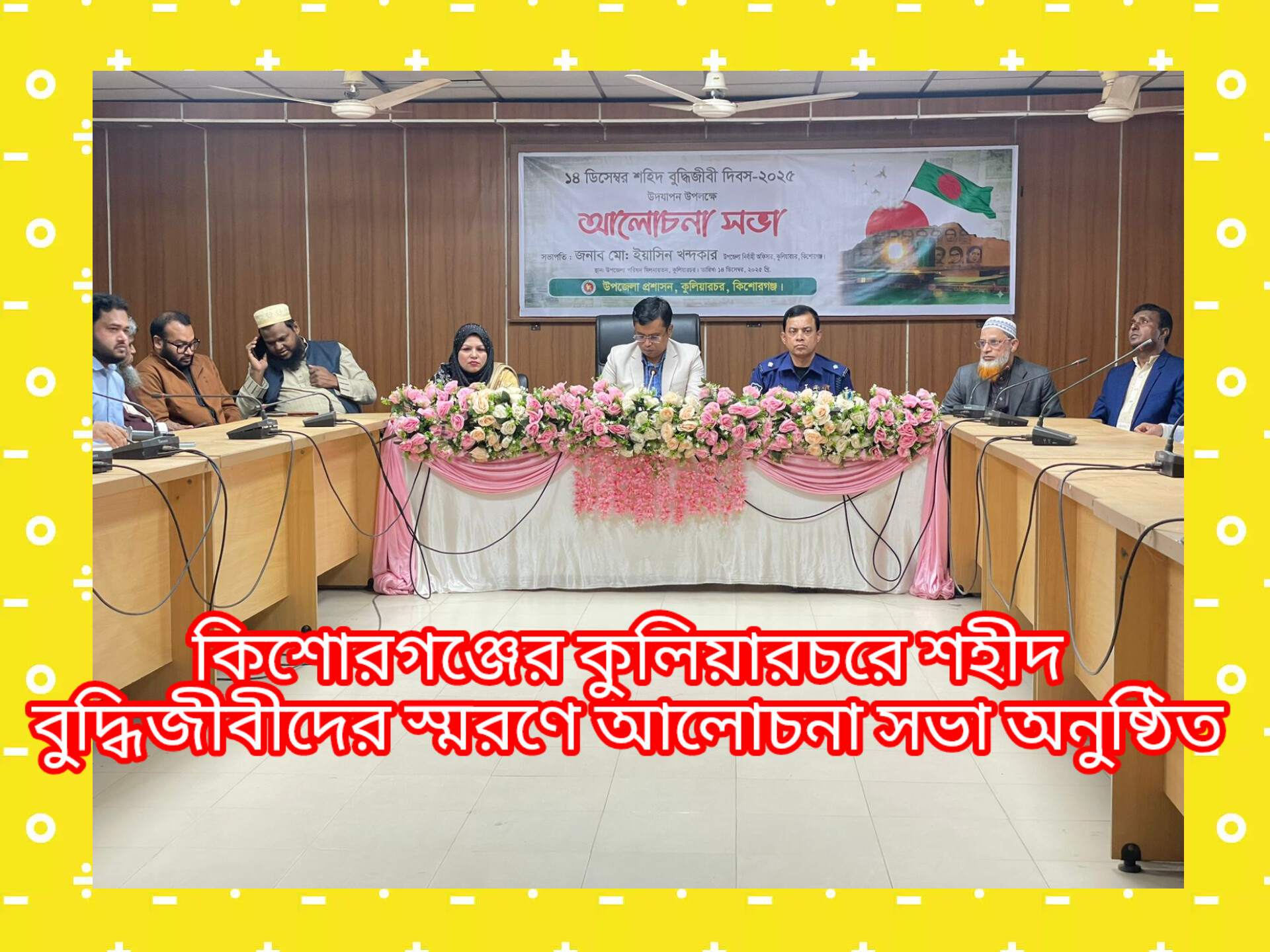 কিশোরগঞ্জের কুলিয়ারচরে শহীদ বুদ্ধিজীবীদের স্মরণে আলোচনা সভা অনুষ্ঠিত