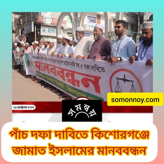 ঐতিহাসিক শহীদী মসজিদের সামনে জামায়াতে ইসলামী কিশোরগঞ্জ জেলা শাখার মানবন্ধন