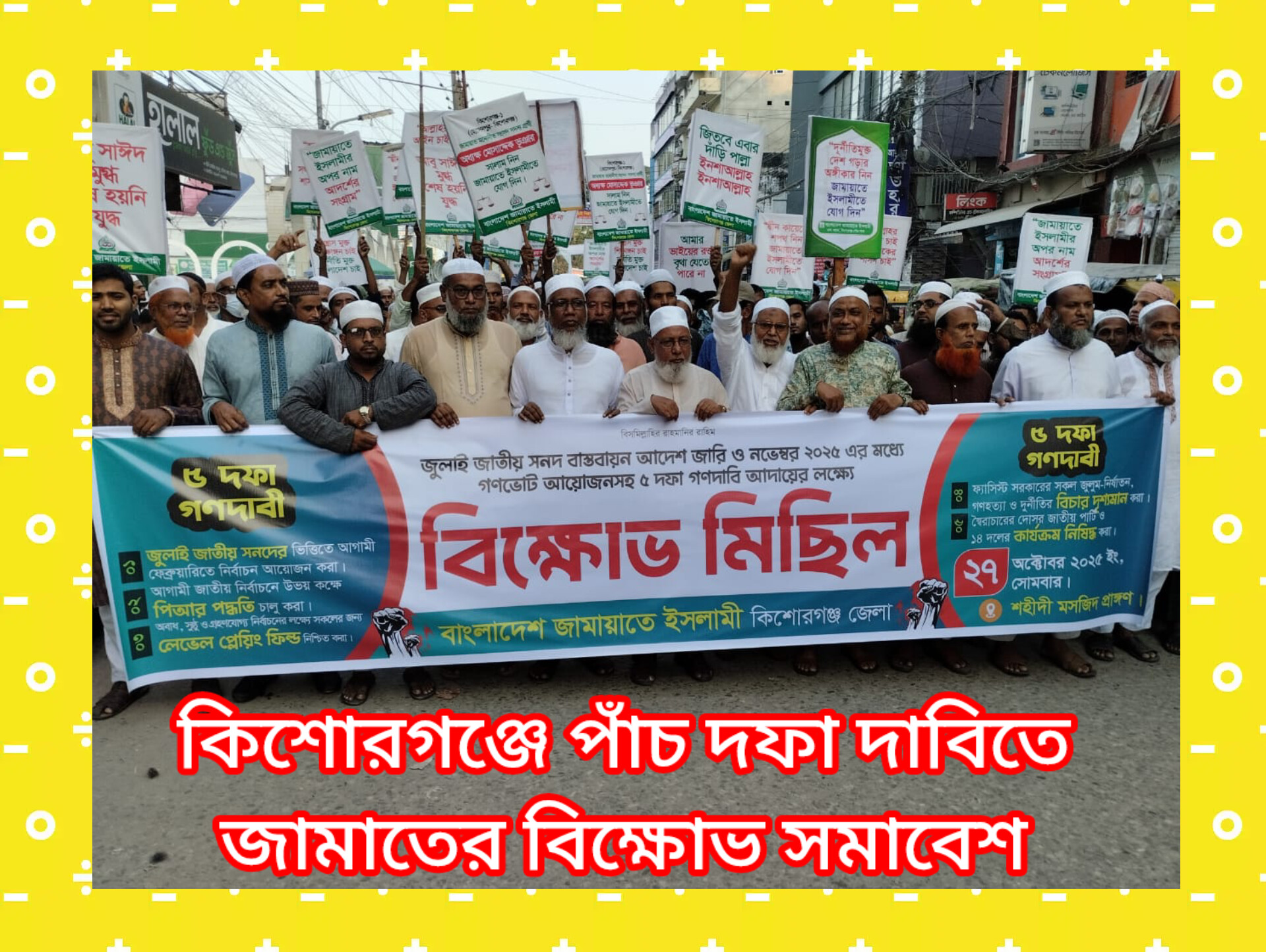 ৫ দফা দাবিতে কিশোরগঞ্জে জেলা জামাতের বিক্ষোভ ও সমাবেশ